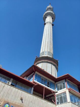 The tower is the second tallest free-standing structure in Kazakhstan. The tower is located below the top of Mount Kok-Tobe, southeast of the city center.