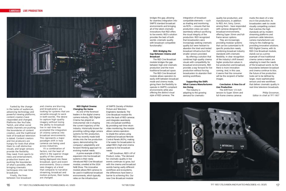 RED Digital Cinema, with its RED Cine Broadcast module, stands out as a prime example of how traditional cinema camera makers are adapting to meet the needs of the broadcast world. As the boundaries between broadcast and cinema continue to blur, the future of live production looks set to be defined by larger, more sophisticated sensors and new workflows that deliver cinematic quality in real-time television broadcasts.