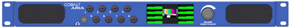 The company says ARIA AUD-MON is fully IPMX-compliant. It is designed for operations moving toward IP-based workflows and supports 16 SDI or 64 MADI metering in a rack-mount form factor. Cobalt says the unit includes a Class-D amplifier with DSP, selected speaker components, a touch display front panel, and eight separate volume controls for mixing. Users can also control it through a web interface.