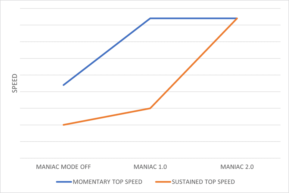 - Maniac Mode 2.0: This feature offers increased time at peak torque on all three motors, with quicker recovery between shots. It’s particularly useful for high-speed applications or when dealing with heavy payloads. The motor temperature estimator has been enhanced to sustain maximum torque longer while protecting the motors. Recovery time after exceeding thermal thresholds has been reduced.