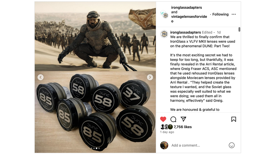 IronGlass, a company specializing in rehousing vintage lenses, announced on March 5th via Instagram that their lenses were utilized in the production of “Dune: Part Two”. This revelation came shortly after Fraser discussed the use of re-housed Soviet-era lenses from IronGlass in an interview with ARRI Rental.