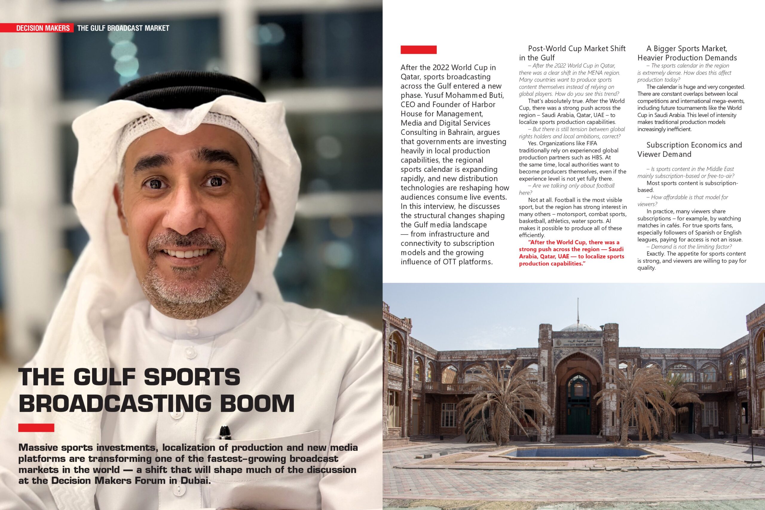 After the 2022 World Cup in Qatar, sports broadcasting across the Gulf entered a new phase. Yusuf Mohammed Buti, CEO and Founder of Harbor House for Management, Media and Digital Services Consulting in Bahrain, argues that governments are investing heavily in local production capabilities, the regional sports calendar is expanding rapidly, and new distribution technologies are reshaping how audiences consume live events.