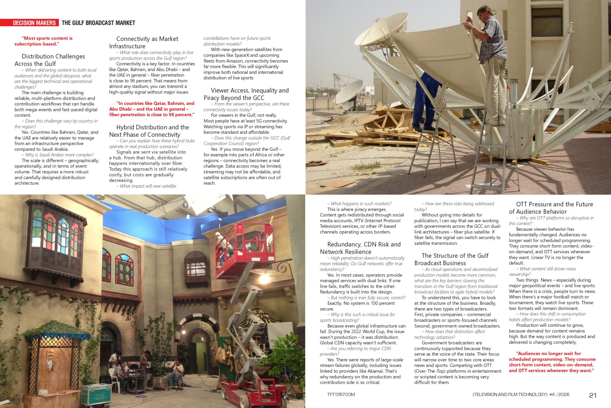 Connectivity is a key factor. In countries like Qatar, Bahrain, and Abu Dhabi — and the UAE in general — fiber penetration is close to 98 percent. That means from almost any stadium, you can transmit a high-quality signal without major issues.