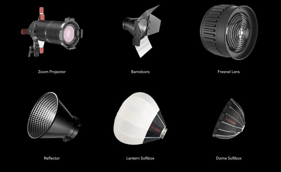 iFootage also provides various modifiers for the Bowens mount, including a new Zoom Projector, barn doors for the reflector, a Lantern, Fresnel Lens, and a Dome softbox.