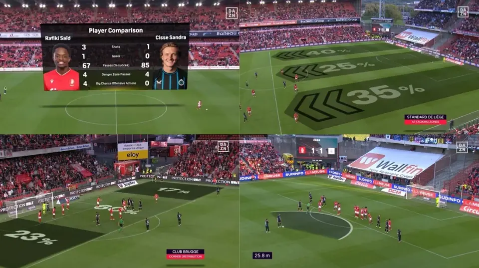 The AR³ system enhances fan engagement by integrating statistics, tactical information, and graphics into live matches. Each visual element is synchronized with live events to provide clarity, insight, and a consistent experience across all broadcasts.