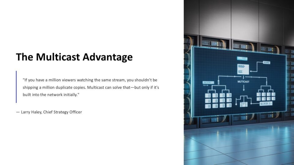 If you have a million viewers watching the same stream, you shouldn’t be shipping a million duplicate copies. Multicast can solve that—but only if it’s built into the network initially.