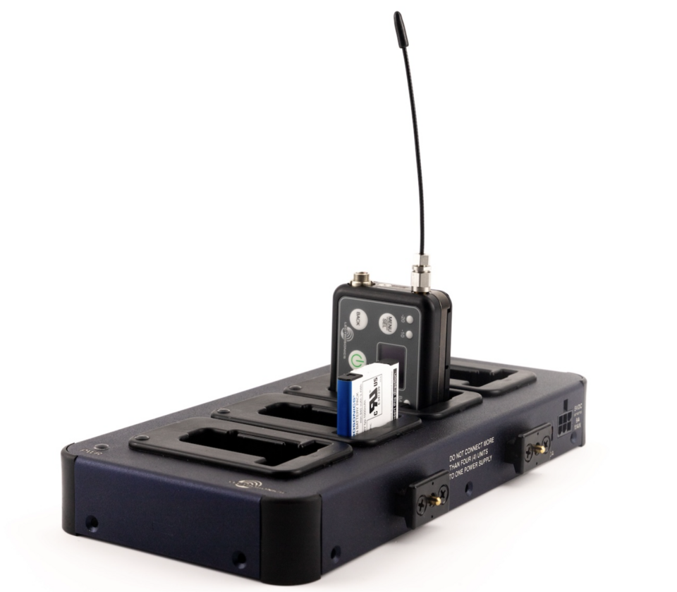 The CHSDSSM 4-bay charging dock, sold separately, facilitates the charging of any combination of four units and/or LB-50 batteries. It can be linked with up to three additional docks for charging up to 16 units or batteries from a single power supply.