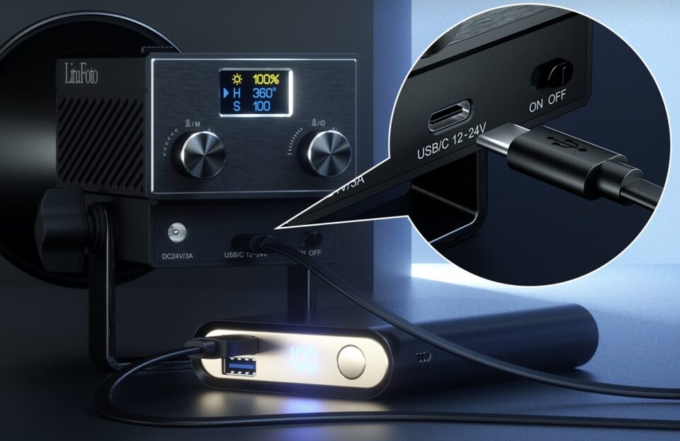Unlike some lights that come with an integrated battery, the U8r relies on an external power supply for operation. It includes a power supply unit, but notably, it supports 12-24V USB-C input. This feature allows for flexibility in power sources, including power banks or a USB-C PD power supply. Additionally, there is an optional battery grip available for purchase, which can be attached to the fixture’s bottom for enhanced mobility.