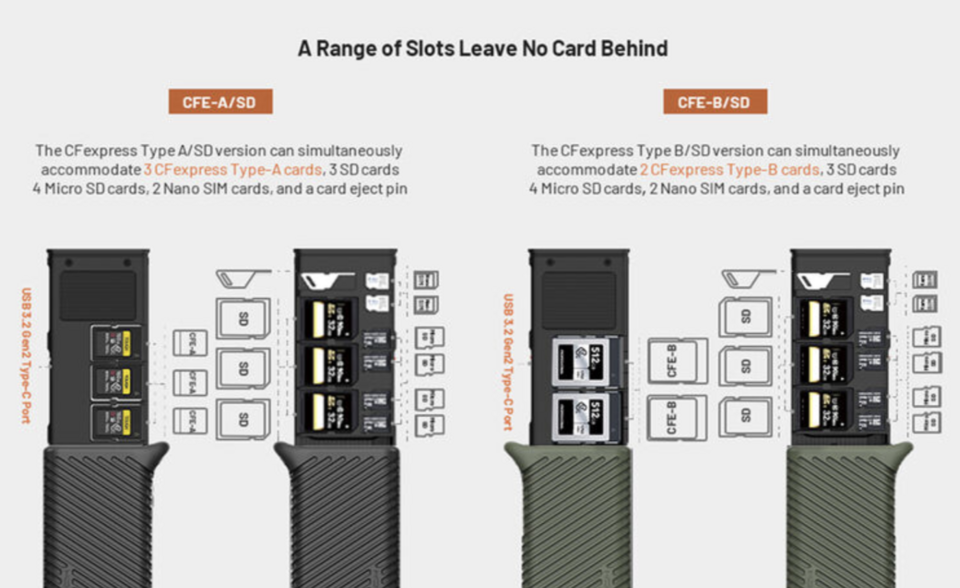 These products are known as the CreateMate CFexpress Type A/SD Card Reader Case and the CreateMate CFexpress Type B/SD Card Reader Case.