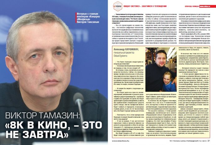 — Должно пройти время. Сначала должен быть «массовый» контент в 4К. Мы довольно долго занимаемся реставрацией нашего мосфильмовского фильмофонда. И, зачастую, сканировать пленку в 4К смысла нет. Разрешающая способность пленки ограничена пленочным зерном. В старых пленках довольно крупный размер зерна. Можно в 2К или в 4К отсканировать, а в результате по резкости не отличить, а затраты на производство значительно выше. К каждому исходнику индивидуально надо подходить, пробовать, если, например, исходник более современный или, к примеру, на Kodak, то имеет смысл его сканировать в 4К. Про 8К речь вообще не идет. Если же говорим о современном кино и современных цифровых камерах, то лучше, конечно, в 4К снимать. Для компьютерной графики желательно иногда и в большем разрешении снять.