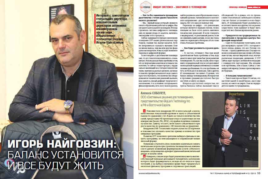Интервью с заместителем генерального директора, исполнительным директором автономной некоммерческой организации «Общественное телевидение России» Игорем Найговзиным