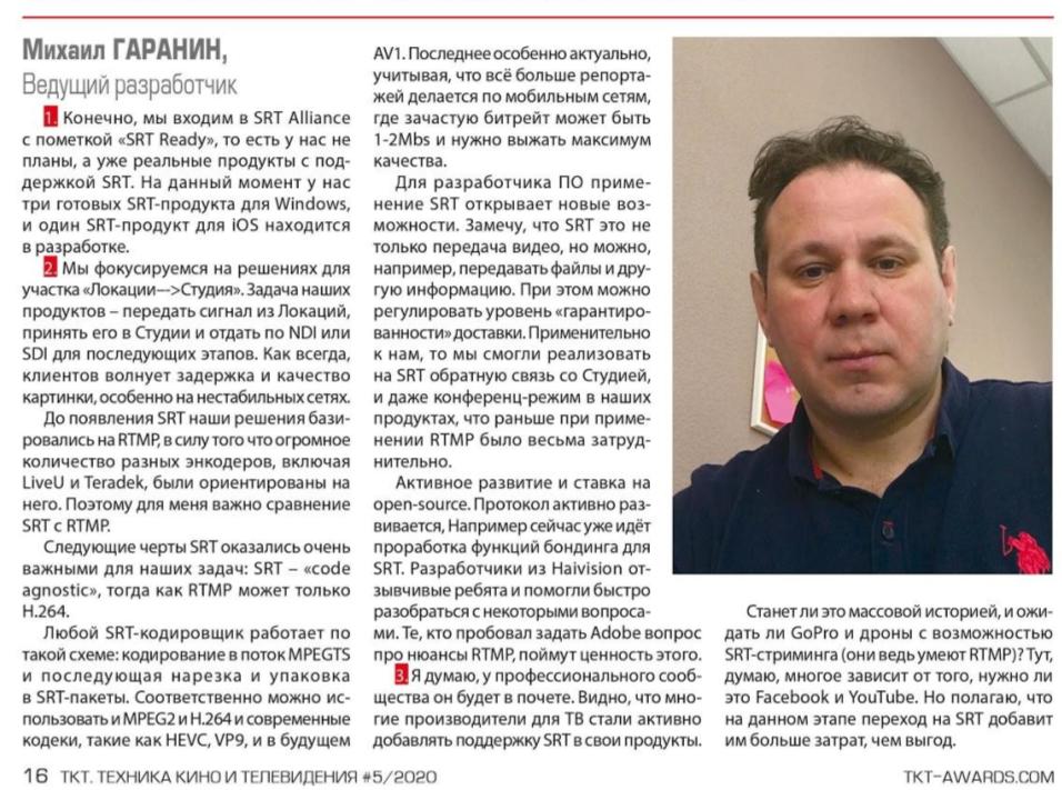 3. Я думаю, что у профессионального сообщества он будет в почете. Видно, что многие производители для ТВ стали активно добавлять поддержку SRT в свои продукты.