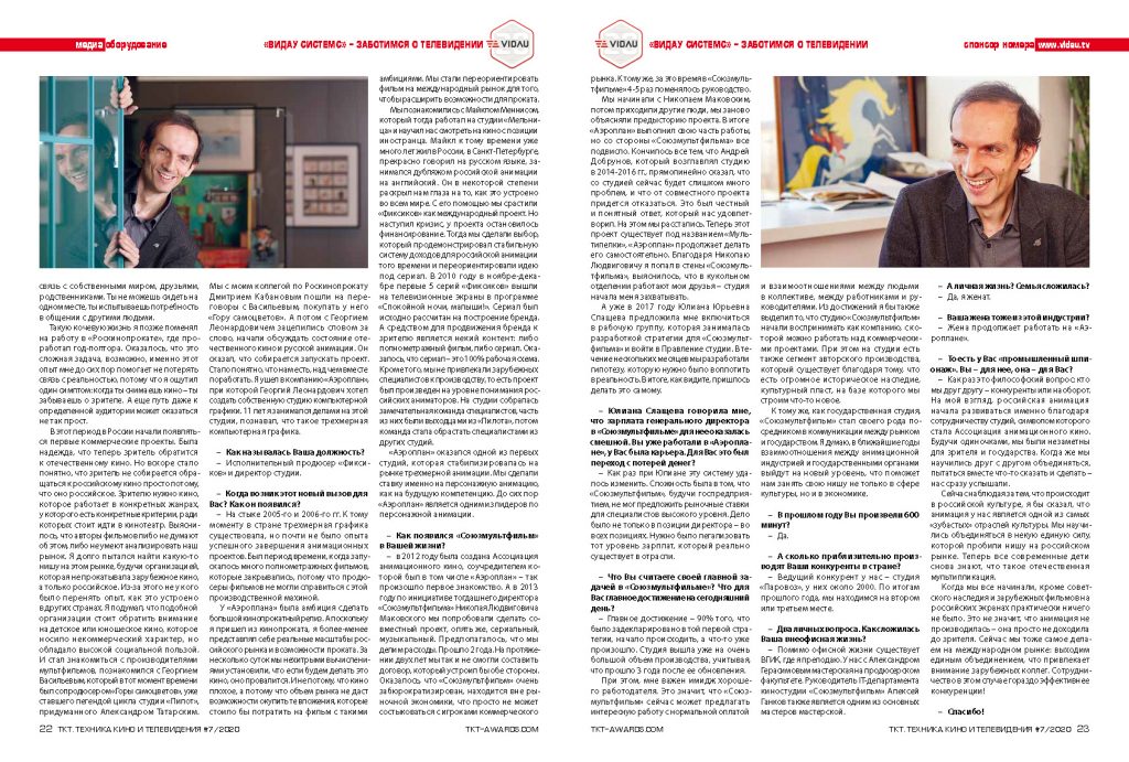 Интервью с генеральным директором Киностудии «Союзмультфильм» Борисом Машковцевым. Опубликовано в TKT 07 (723) 2020.