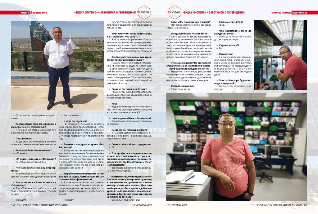 Интервью с начальником отдела АСК ТОО «УК «Казмедия орталыгы» (Казахстан) Назымом Баратовым. Опубликовано в TKT VIP 07 (723) 2020.
