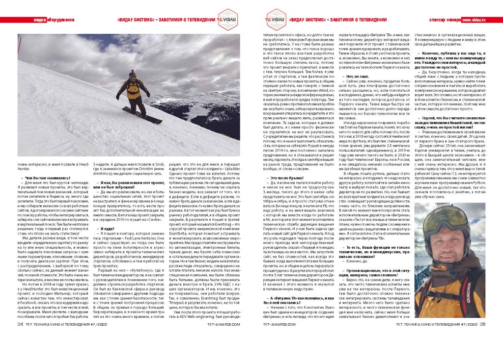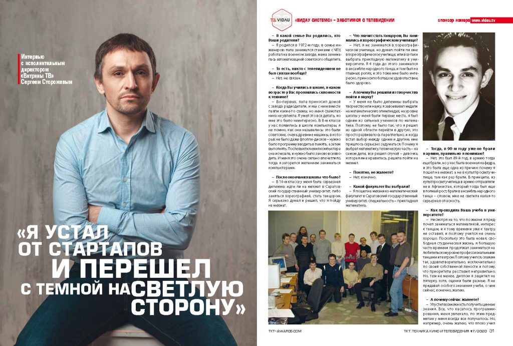 Интервью с исполнительным директором «Витрины ТВ» Сергеем Сторожевым. Опубликовано в TKT 07 (723) 2020.