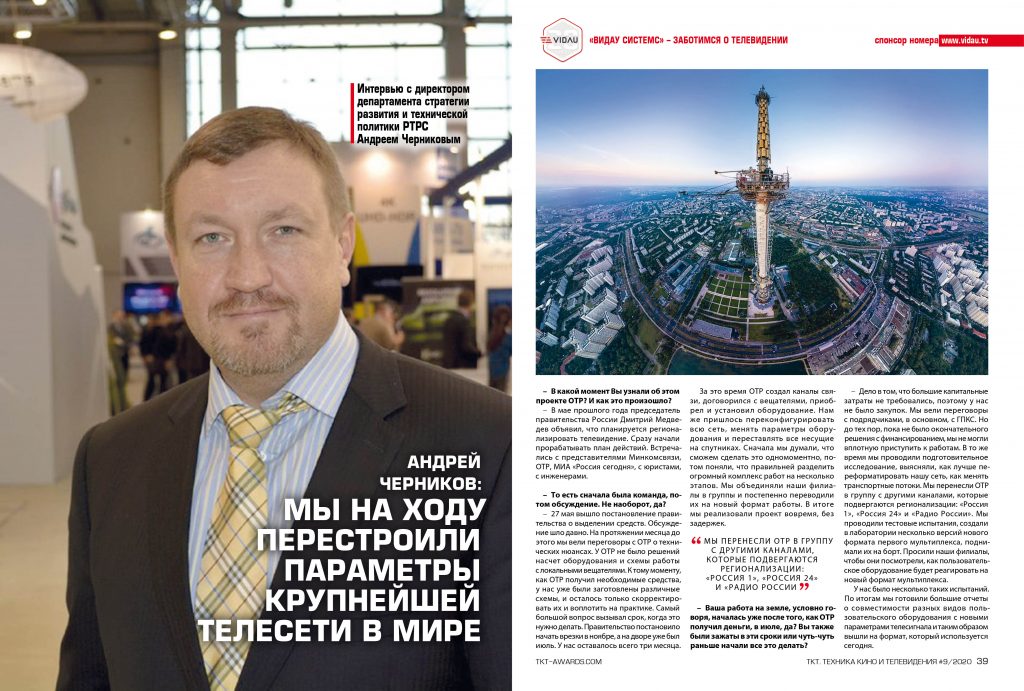 Интервью с директором департамента стратегии развития и технической политики РТРС Андреем Черниковым. Тема номера/ОТР. Опубликовано в TKT 09 (725) 2020.