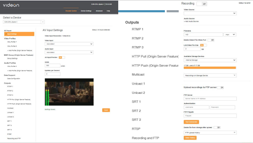 Оно поддерживает практически все протоколы вещания, которые могут быть. Есть встроенный накопитель на 17 ГБ, есть слот для карты SD, есть USB-порт, куда можно подключить флешку или внешний диск. Оказалось, что 17 ГБ вполне достаточно, чтобы записать примерно полтора-два матча. Для записи одного матча этого вполне достаточно очень хорошо, плюс позволяет после записи всё автоматически выгрузить на FTP-сайт. Поскольку все кодирующие устройства находятся на 60 разных стадионах, возможность дистанционной поддержки была очень важна. Управление всеми параметрами осуществляется через XML-файлы. На данный момент я не знаю, какое похожее устройство можно было бы найти, чтобы с ним было так удобно работать.