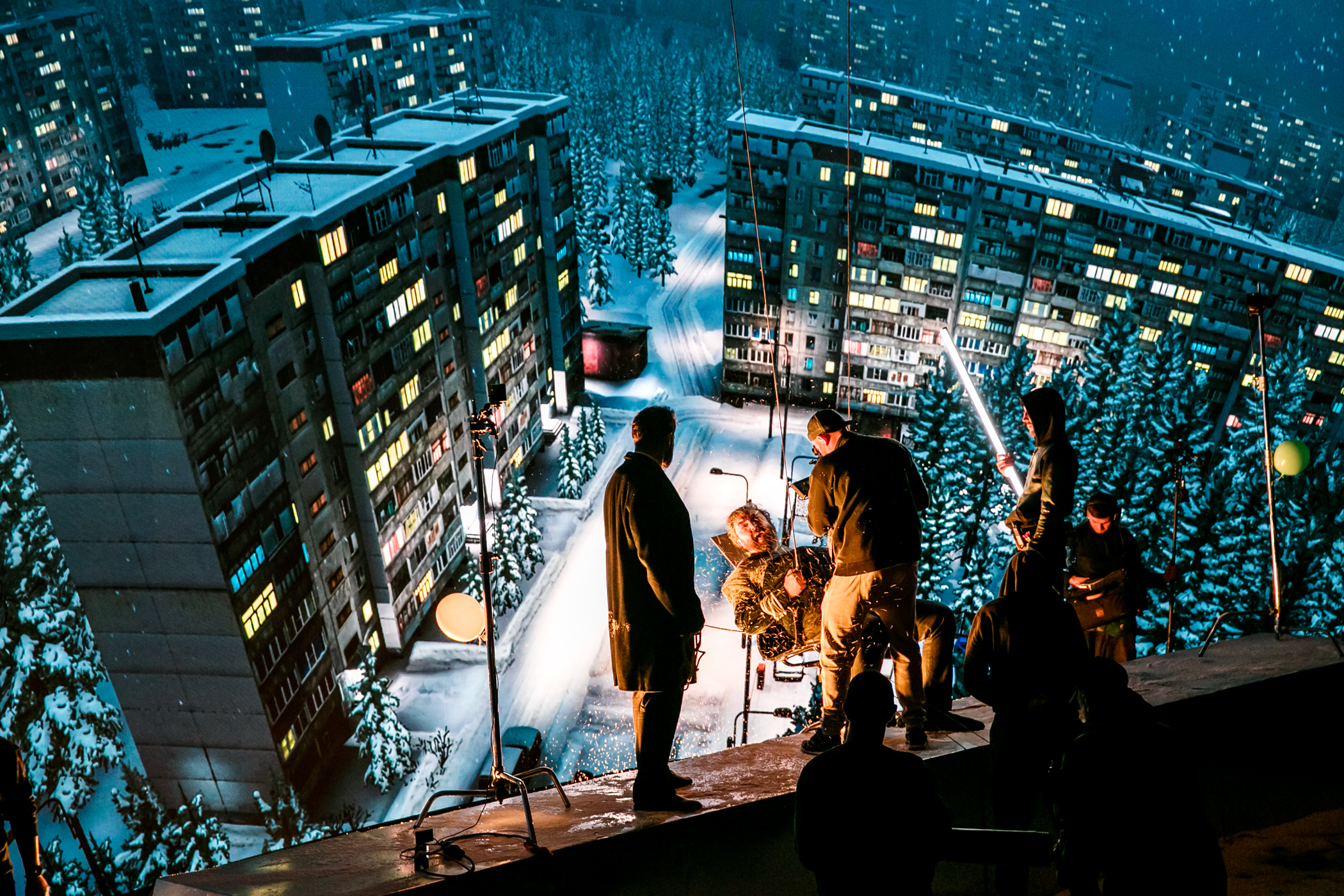 Так считают многие и ошибаются. Не так много фильмов снимают на Марсе или на Эйфелевой башне. Показателен опыт съёмок нашей собственной картины «Гарпун». По сути задача стояла вполне обычная – в течение одного съёмочного дня нам предстояло снять трюковую сцену на крыше стандартной пятиэтажки и игровую сцену в интерьере квартиры. По сюжету всё происходит зимой, в Карелии. А на улице московское лето. Как в таких случаях выглядит стандартная процедура? Нужно найти область, где в это время есть снег, по сути, отложить съёмки на холодный период времени. Дальше приехать съёмочной группе, зайти на объект, высветить локацию, а это, то же самое что высветить целый квартал, ибо мы на крыше. Оснастить систему безопасности для трюковой сцены и снять ее ночью. Для игровой сцены в интерьере – если повезет, и локейшн-менеджеры найдут квартиру в том же доме – спуститься в квартиру, подготовить и снять. На это отведена всего одна ночь. Исходя из собственного опыта, я знаю, насколько сложно это сделать и как много факторов должно совпасть. В нашем павильоне XOVP для сцены на крыше – мы создали контент, сделали пандус, привезли снег, поставили ветродуи и без всякого риска для актеров и остальных членов съёмочной группы, в комфортных условиях сняли достаточно большую игровую трюковую сцену. С диалогом главных героев, с висящим над пропастью стулом, затем поменяли контент на интерьер квартиры, убрали пандус, поставили стол, компьютер, кресла и достаточно оперативно сняли сцену в интерьере. Так что наша технология прекрасно применима и для бытовых игровых сцен.