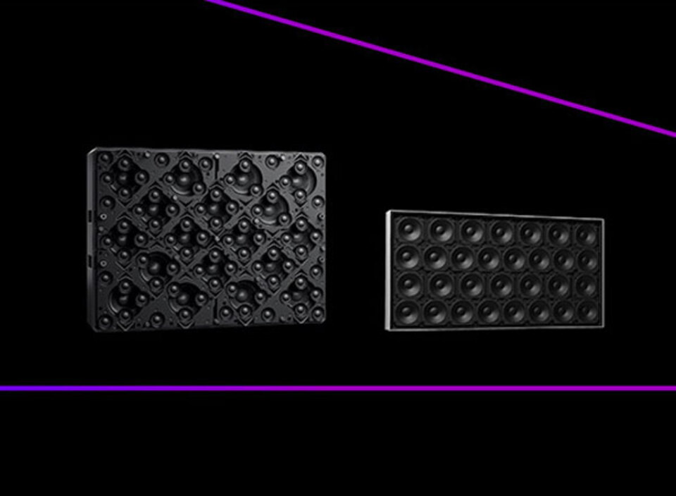 Технология HOLOPLOT позволяет точно контролировать звук как по горизонтали, так и по вертикали, обеспечивая возможность работы в сложных акустических условиях и создания выдающегося звука для различных приложений, включая стереозвук.