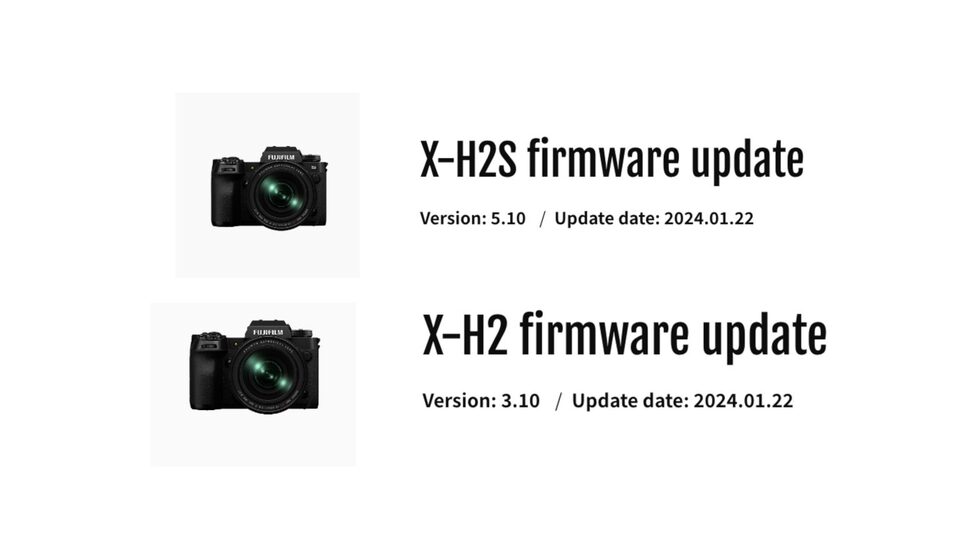 Fujifilm выпустила обновления прошивки для гибридных камер X-H2 и X-H2S. Версия обновления для X-H2 — 3.10, а для X-H2S — 5.10.