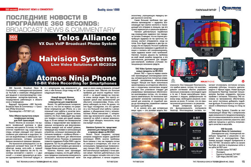 Новинки оборудования для вещания и кинопроизводства с комментариями экспертов-практиков в еженедельной программе 360 Seconds. Broadcast News & Commentary