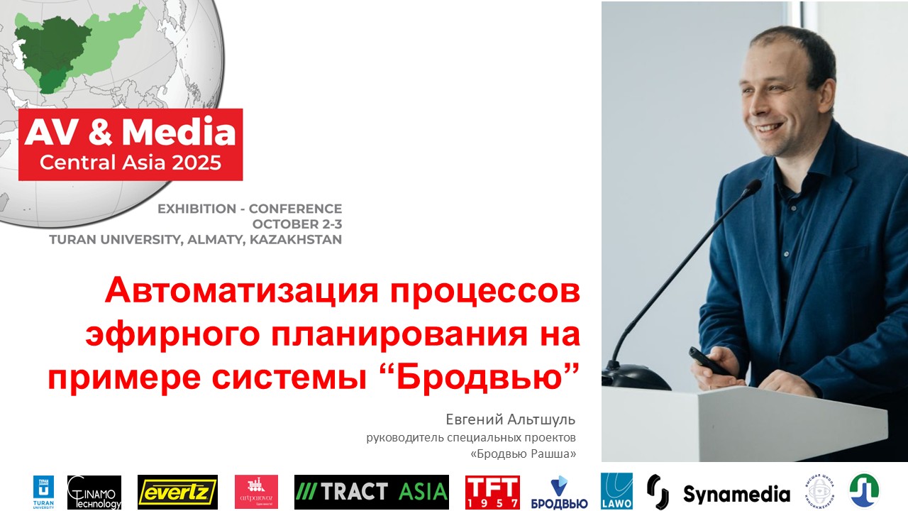 Евгений Альтшуль, руководитель специальных проектов «Бродвью Рашша», выступит с докладом «Автоматизация процессов эфирного планирования на примере системы «Бродвью» на конференции во время выставки AV & Media Central Asia 2025.