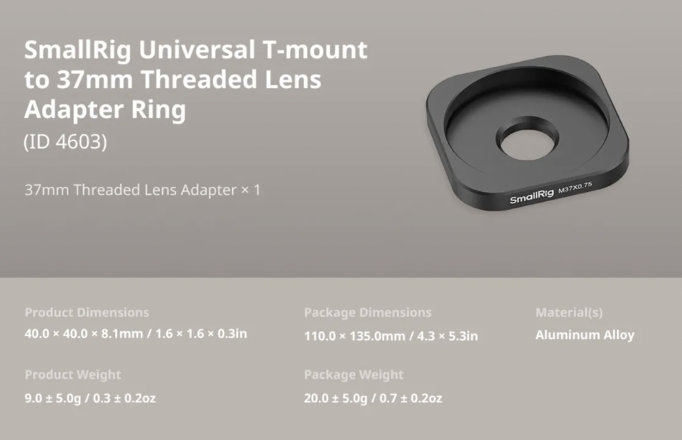The cage is part of the SmallRig quick release ecosystem and is compatible with standard 1/4”-20 threaded handles. It allows users to quickly switch shooting modes and enhances the potential of their mobile filmmaking setup. The kit includes a Tripod Quick Release Adapter for added stability, a T-mount Quick Release Backplate, and multiple mounting points: eight 1/4″ threaded holes, two cold shoe mounts, four quick release mounts, and one strap slot.