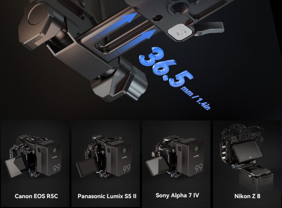 One of the key features of this battery plate is its tool-free installation process, which simplifies setup and adjustments for users. It incorporates a built-in Arca-Swiss mount plate, making it compatible with any Arca-Swiss plate, SmallRig cages, or SmallRig baseplates. This feature ensures a wide range of compatibility, particularly with popular camera models from Sony, Canon, and Panasonic, including but not limited to Sony Alpha series, Canon EOS R series, and Panasonic LUMIX S and GH series.