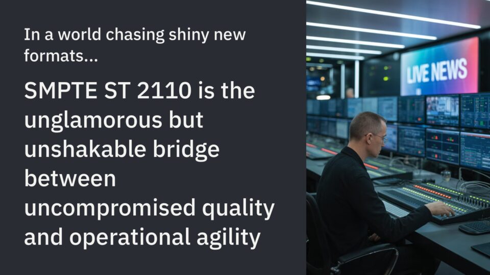 While it sounds like a noble cause, there were many motivating factors, but we can discuss political history another time… Now, some of the same folks who wrote the standard are among those claiming “ST 2110 is dead”. They are wrong, and they likely know it, so what’s with all the misinformation, and what is right for your business?