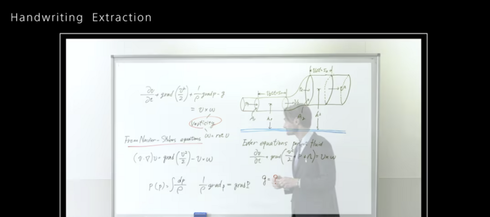 Another notable feature is handwriting extraction, which uses augmented reality to ensure that any text or diagrams on a board remain visible, even if obscured by the presenter. This allows remote viewers and those watching a recorded presentation to clearly see the content without obstruction.