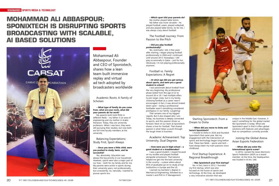 Mohammad Ali Abbaspour: Sponixtech Is Disrupting Sports Broadcasting with Scalable, AI-based Solutions | Mohammad Ali Abbaspour, Founder and CEO of Sponixtech, Qatar