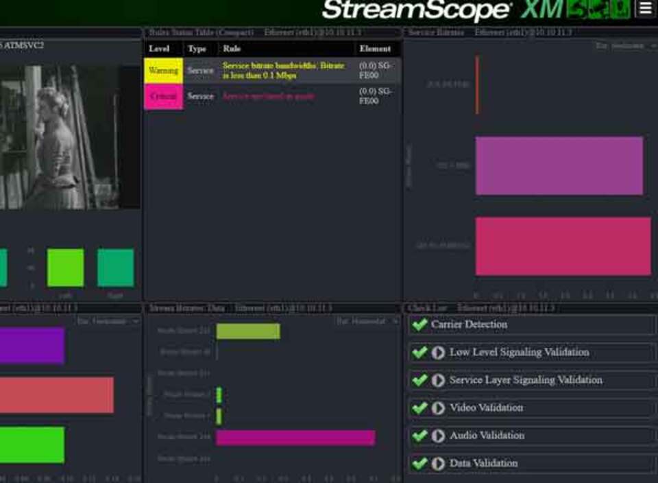 The StreamScope® Enterprise platform enables broad quality of service monitoring and management, integrating with the StreamScope XM Monitor to optimize NEXTGEN TV service delivery across regions or nationwide.